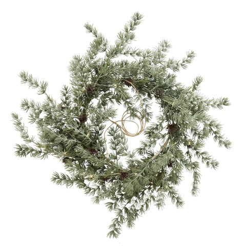 Naturtrogen och allergivänlig konstgjord krans från Cedille-serien med LED-ljus.