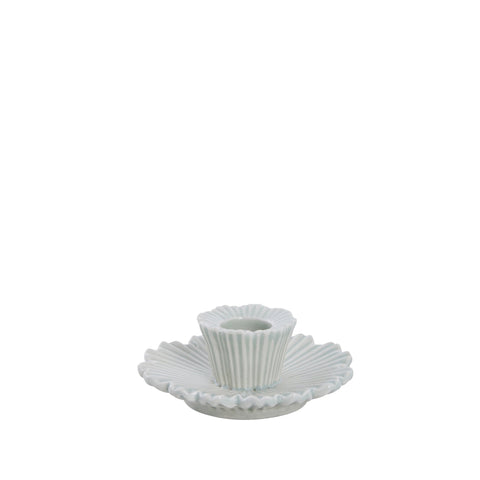 En vacker ljusstake i keramik, formad som en blomma med ett elegant räfflat mönster som ger den ett sofistikerat och stilfullt utseende. Ljusstaken har en stabil bas som säkerställer att den står stadigt, samt en liten hållare för ett standardljus – perfekt för att skapa en mysig atmosfär. Ljusstaken passar utmärkt på bordet eller i fönsterkarmen. Du kan också skapa ett magiskt dukat bord genom att kombinera våra Dehmira-ljusstakar med våra minivaser.Produkt: stearinljusstake