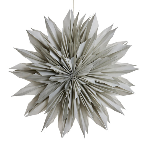 Den slående Palisia stjärnexplosionen dekoration tillför en feminin och modern touch till varje juldekoration. Denna dekoration mäter L60xB60xH cm och är tillverkad av papper. Med en intrikat, lager-på-lager design och skarpa, strålande spetsar skapar den en dynamisk och iögonfallande presentation. Den mjuka, neutrala tonen förstärker dess eleganta appell, vilket gör den till ett mångsidigt inslag för festliga girlander eller som statement väggdekoration. Oavsett om den hängs individuellt eller tillsammans med andra ornament, ger denna unika dekoration en känsla av textur, dimension och sofistikering till säsongens styling.Produkt: dekoration
