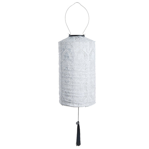 Skapa en varm och förtrollande atmosfär med denna dekorativa hänglykta från Lene Bjerre, mäter L18 x B18 x H33 cm. Tillverkad i delikat med intrikata utskurna mönster, sprider den ett mjukt och poetiskt sken när den tänds. Den eleganta formen är avslutad med en kontrasterande tofsdetalj som ger en förfinad och lätt exotisk känsla. Perfekt att hänga i trädgården, på balkongen eller inomhus – den tillför både ljus och dekoration i äkta skandinavisk stil – enkel, tidlös och full av charm.