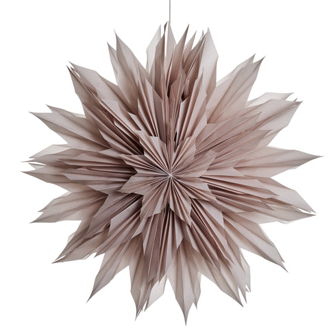 Den slående Palisia stjärnexplosionen dekoration tillför en feminin och modern touch till varje juldekoration. Denna dekoration mäter L60xB60xH cm och är tillverkad av papper. Med en intrikat, lager-på-lager design och skarpa, strålande spetsar skapar den en dynamisk och iögonfallande presentation. Den mjuka, neutrala tonen förstärker dess eleganta appell, vilket gör den till ett mångsidigt inslag för festliga girlander eller som statement väggdekoration. Oavsett om den hängs individuellt eller tillsammans med andra ornament, ger denna unika dekoration en känsla av textur, dimension och sofistikering till säsongens styling.Produkt: dekoration