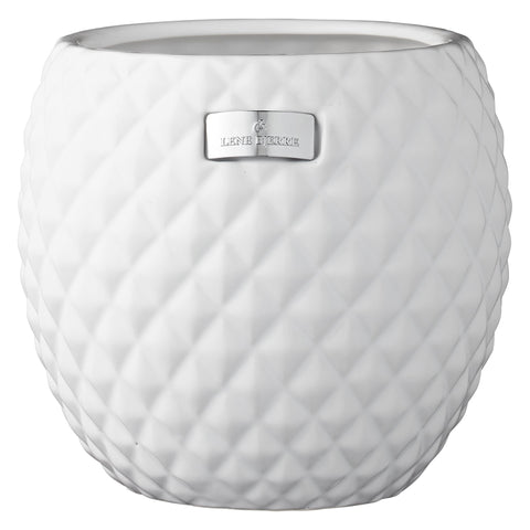 Vacker Rosabelle kruka i färgen vit och mått L18 x B18 x H18. Skjularen är tillverkad av keramik, vilket gör den slitstark och hållbar, samtidigt som den ser bra ut i många olika miljöer. De fina detaljerna på skjularen gör att den sticker ut från andra designer.