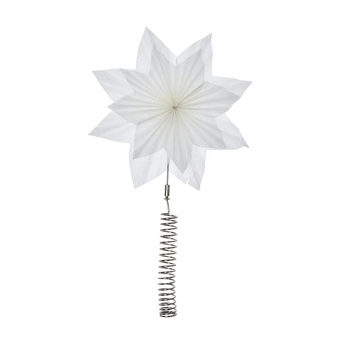 Den eleganta juletrestjerne tillför en touch av sofistikering och charm till din julgran. Med en vackert vikt pappersstjärndesign i en mjuk, neutral ton skapar den ett delikat men iögonfallande blickfång. Den fästa metallfjäderbasen säkerställer en säker passform på toppen av trädet och gör det enkelt att placera. Den minimalistiska estetiken kompletterar både traditionell och modern inredning och gör det till ett tidlöst inslag i säsongens firande.Produkt: Topstar
